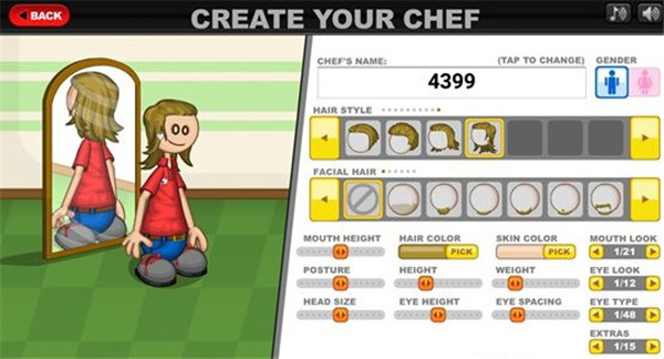 游戏一开始我们就需要选择店员角色,其实就是选择性别,除了前面两个是直接现成的角色之外,我们还可以选择第三个全新的角色创造模式来直接创造更有特点的角色外形。