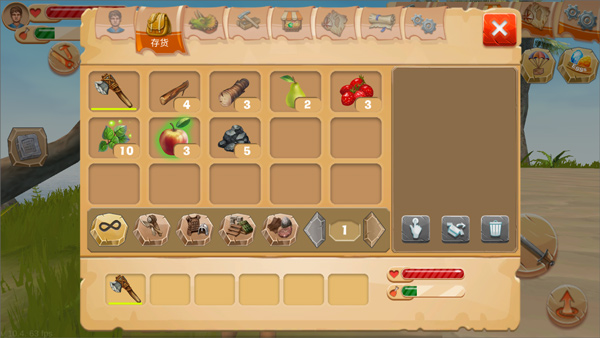 8、玩家获得充饥的食物后打开背包选择水果充饥;