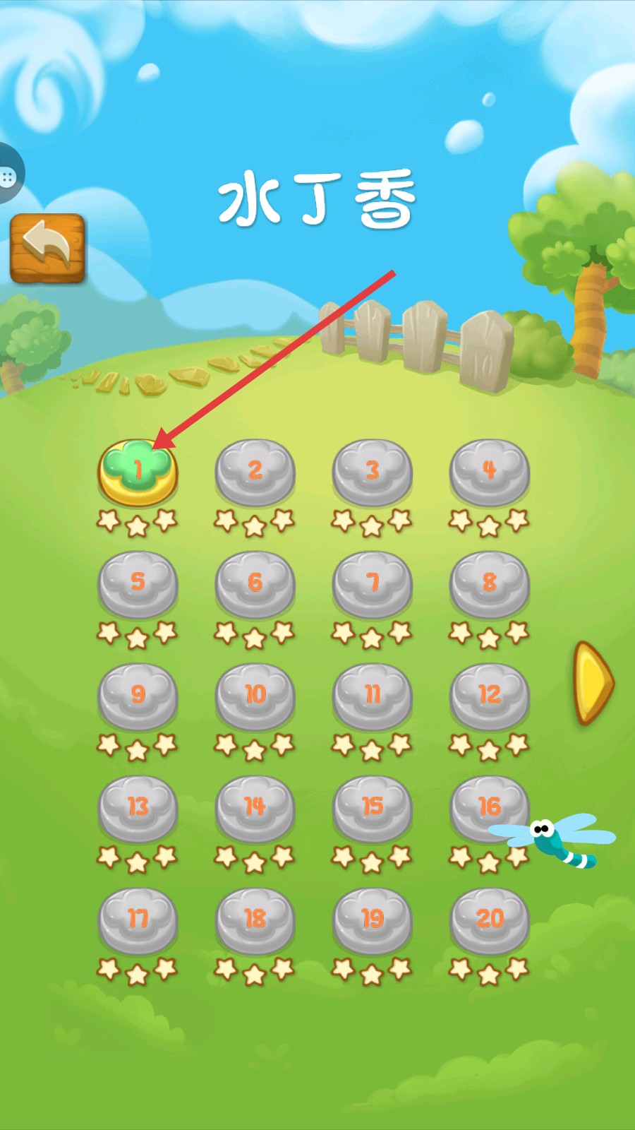 1、点击关卡选择界面中【1】号关卡,进入【水丁香】主题的第1关游戏。
