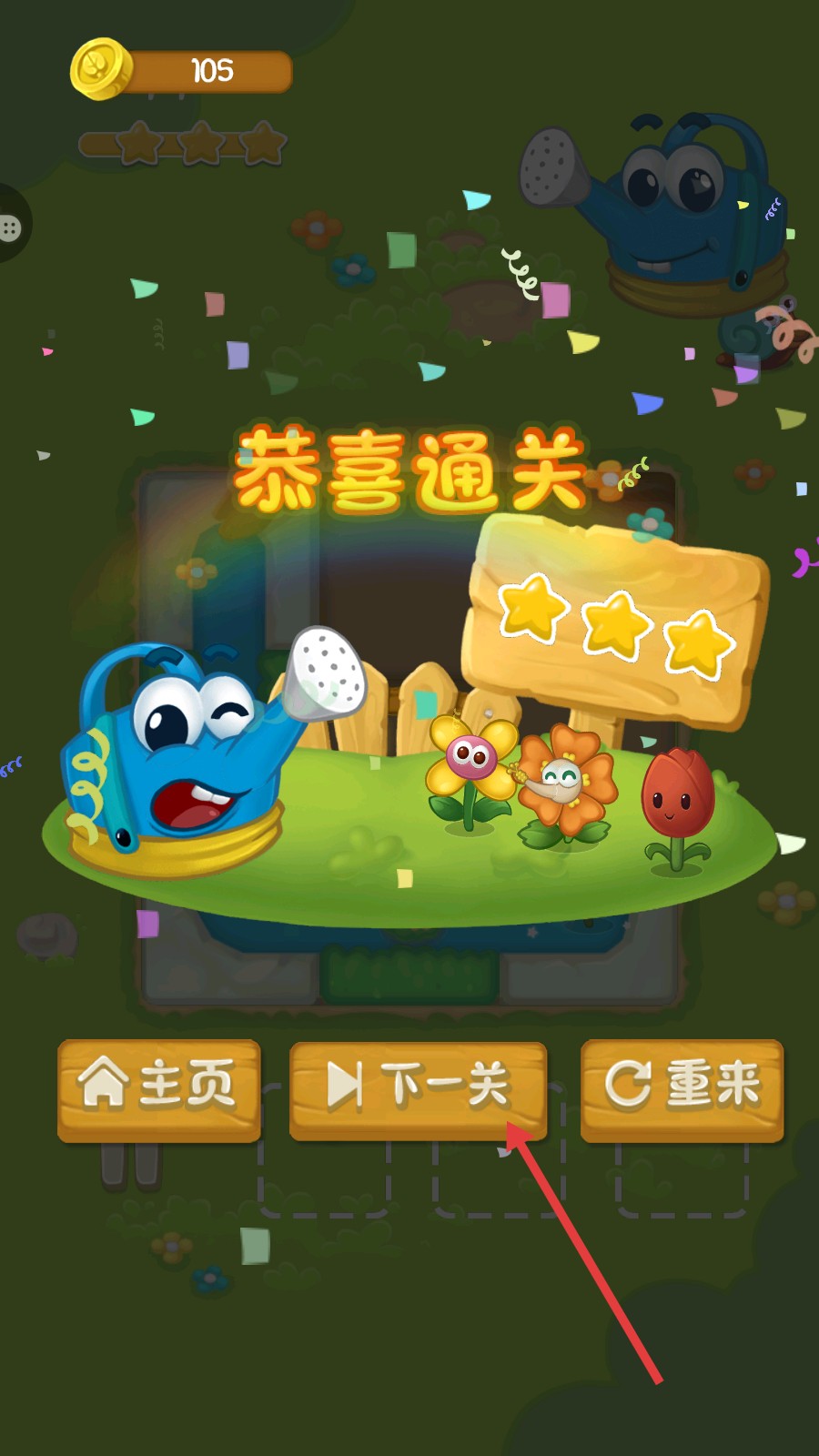 4、通关后,点击界面中的【下一关】按钮,继续挑战后续关卡。