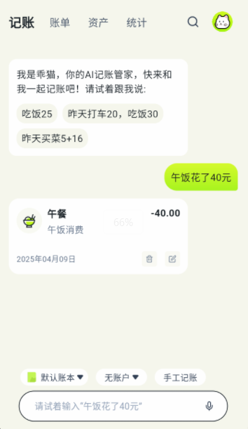 用户可以通过语音交互的方式,口述消费场景,软件会自动识别并生成精准账单。