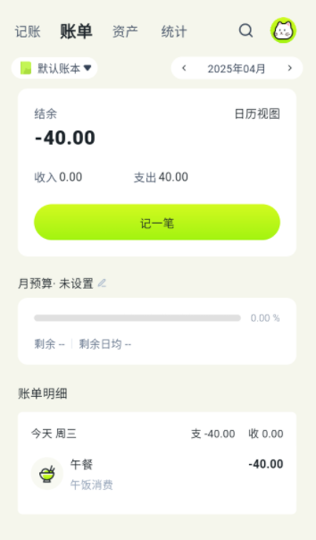 提供多款主题皮肤可选,账单列表智能归类每日消费记录,打造专属的财务管理空间。