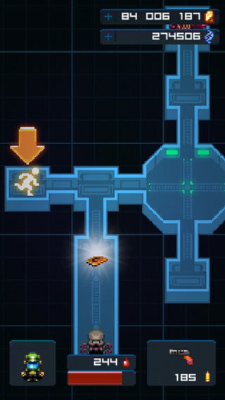 3、每当我们击杀一个房间的怪物后,若是这个房间还有其他相邻的房间就会显示出来,不过不是所有的房间中都是怪物,有的房间中会出现宝箱之类的东西,点击打开可以随机获得金钱,子弹或者武器等东西。当我们击杀某个怪物后旁边的房间中出现一个小人奔跑的图标,就意味着我们找到了出口,这时候我们就可以根据自己的剩余血量值做出选择,血量值多的话就继续寻找其他有怪物的房间,全部击杀后再点击出去,血量少的话直接出去就可以了。