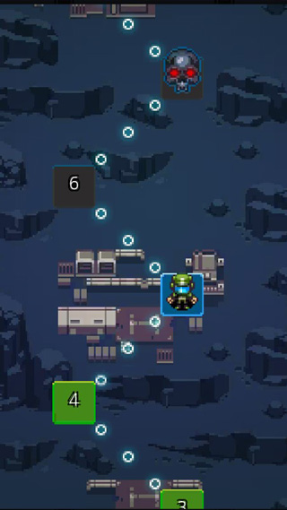 2、刚进入时屏幕上出现一个小房间,点击那个小房间后旁边的房间就会出现,旁边的房间中会有怪物在等着我们,想要前进并找到出口就需要杀死旁边房间中的怪物,点击房间中的怪物进入战斗状态,怪物以和我们一样的方式显示在屏幕上,用手指点击屏幕上的怪物来攻击怪物,每点击一次攻击一次,当然同时我们也会受到怪物的攻击,血量会慢慢下降。在我们击杀怪物后,有的怪物会留下残骸,点击可以恢复我们少量的血量值。