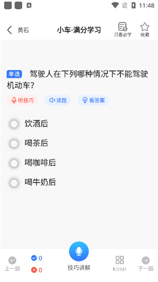 4、点击底部的技巧讲解还能够快速了解题目的答题技巧