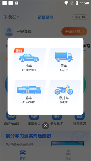 1、打开软件进入到主页中点击右上角的小车可以对驾照类型进行切换