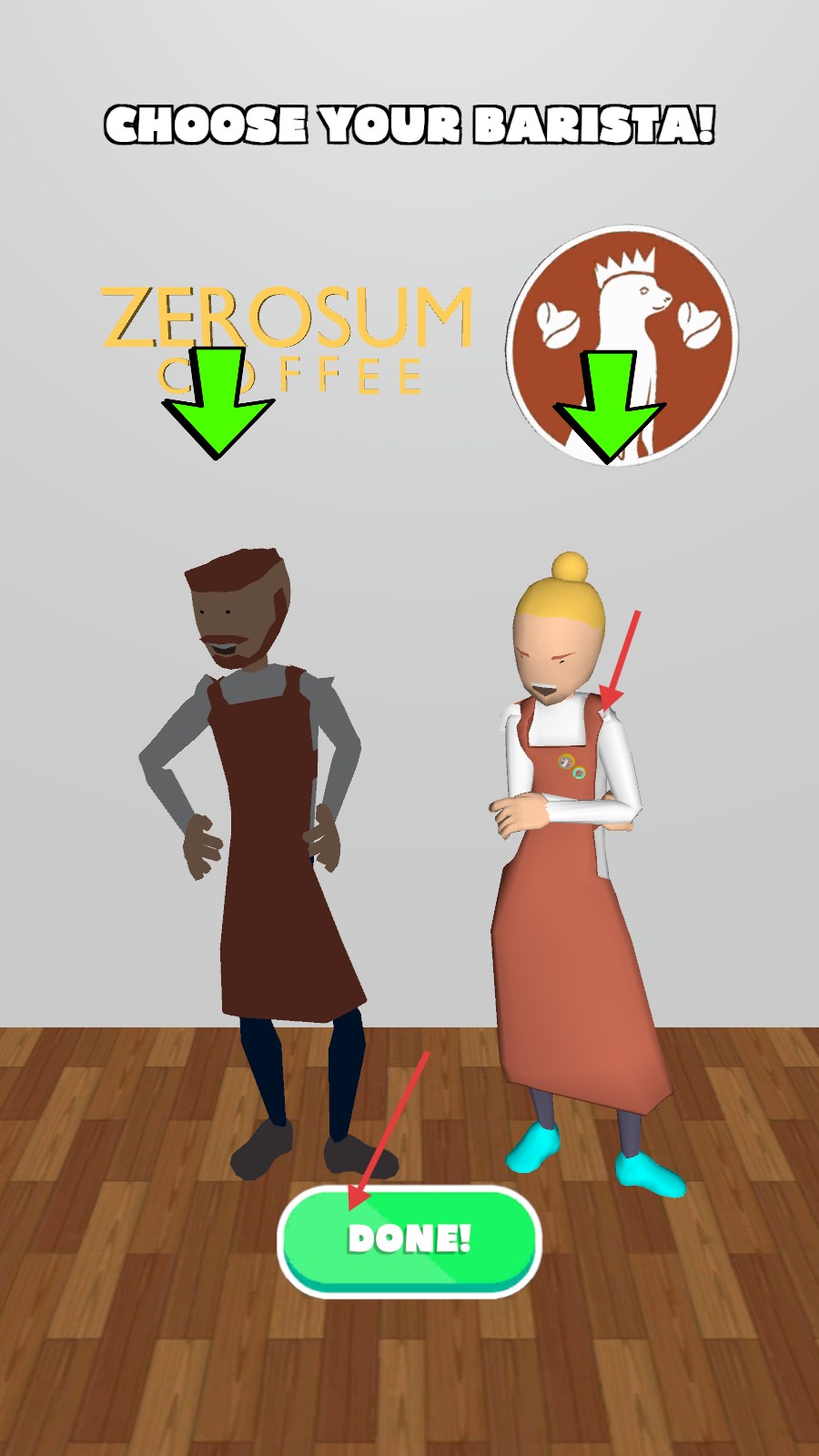 2、选择咖啡师角色后,点击【DONE!】按钮确认。