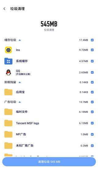 智能清理引擎,极速清理手机内的垃圾文件、运行缓存;
