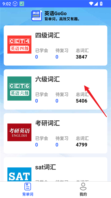 3、根据自身水平挑选对应词库,灵活安排学习时间,告别盲目背词。
