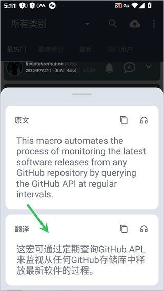开启此模式后,泡泡屏幕翻译会为你自动翻译屏幕上的文字,无需再操作。随时可以开始和暂停自动翻译。