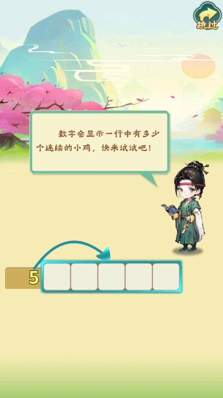 1、数字会显示一行中有多少个连续的小鸡,快来试试吧!