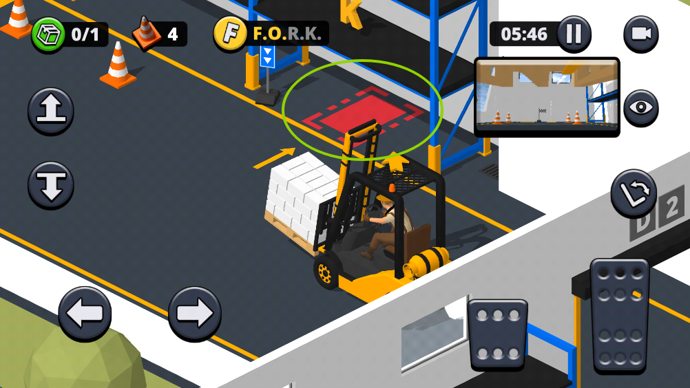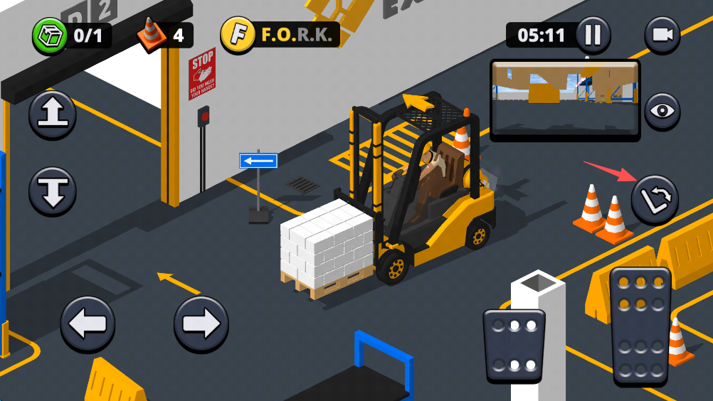 13、放置完成后,我们仍然需要将叉车停放到特定区域,当停放后,就会关卡结算。