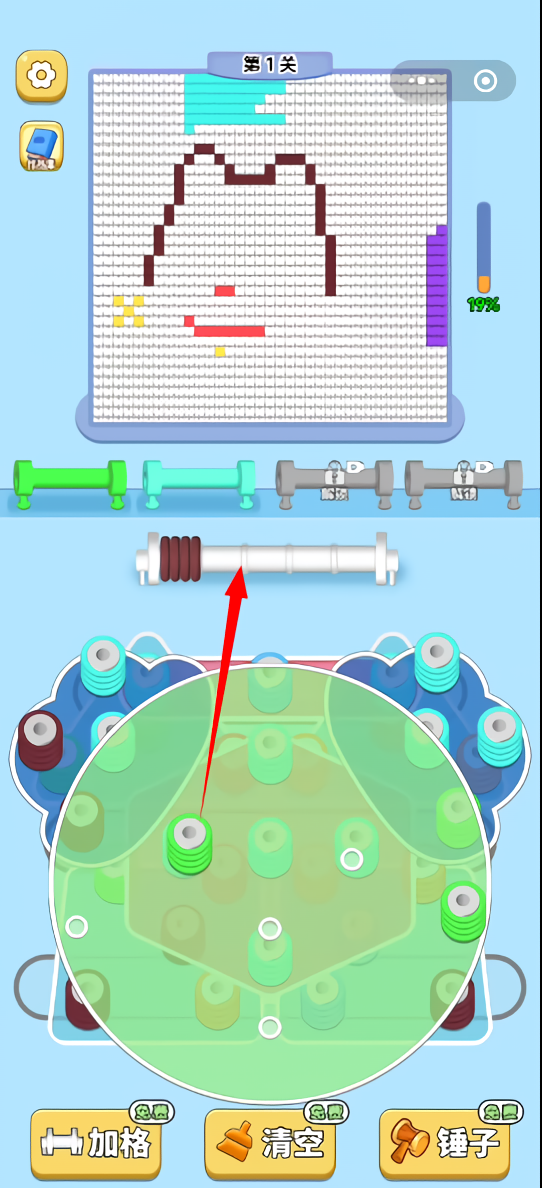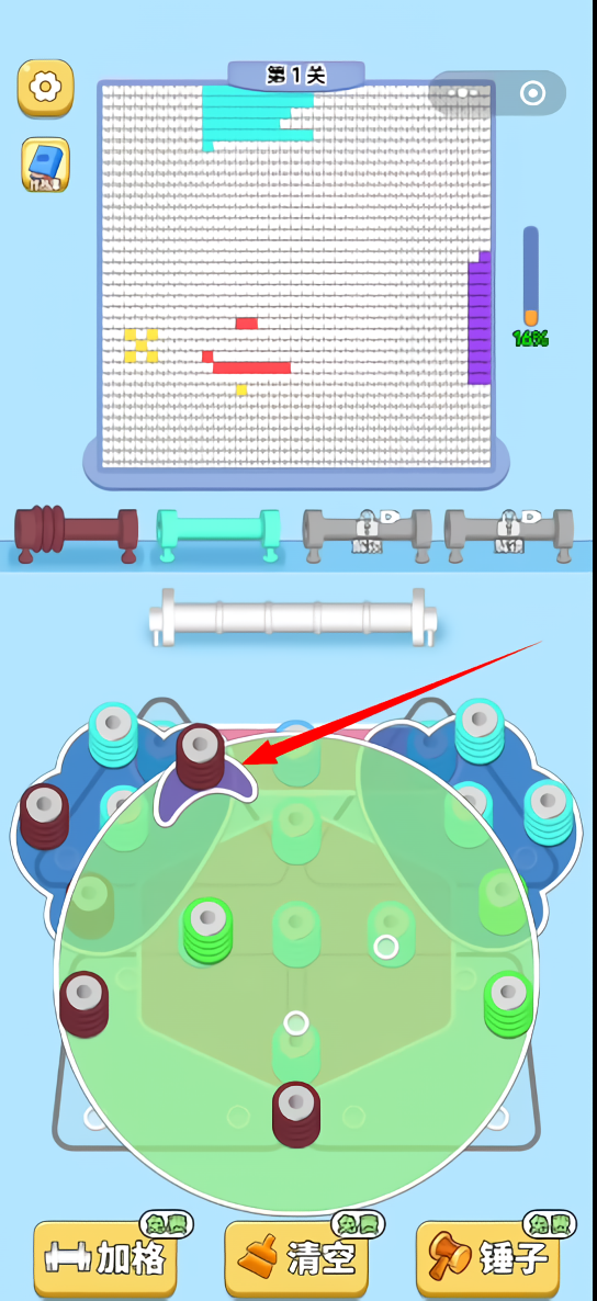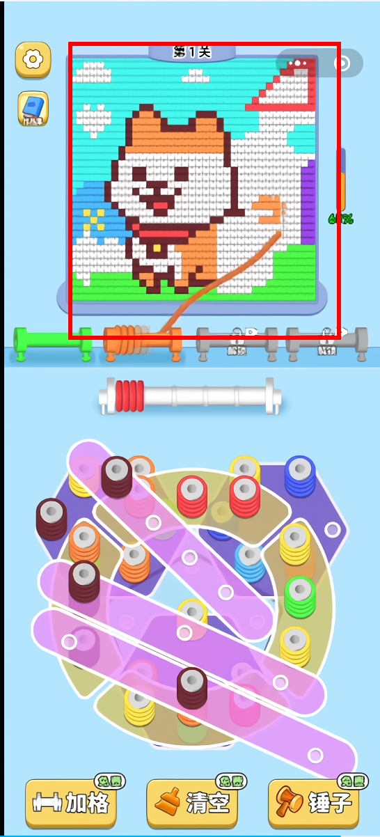 打个毛线游戏官方正版的整体玩法其实不难,玩家需要根据屏幕下方不同的颜色按钮选取合理的毛线颜色