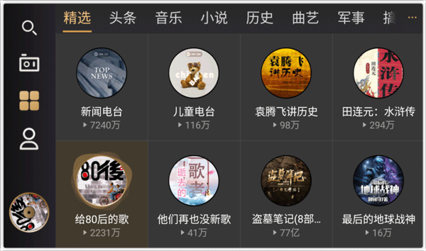 打开这个界面,大家有没有觉得像极了今日头条的界面,所以博谈天下称之为电台版的今日头条,除了听电台,它更像是一款听书软件了。