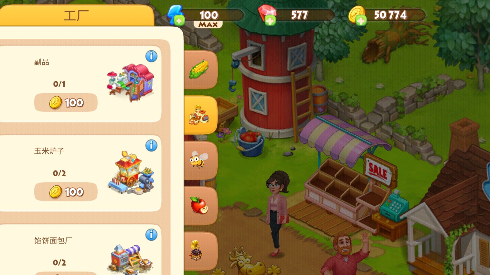 3、升级农场装备,采购机械化设备来运作农场的工作,节省人力。