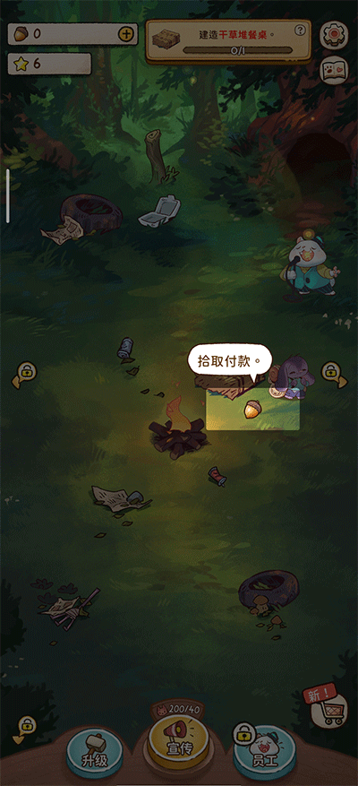 5、客人用餐结束后,会付橡树果,需要点击拾取