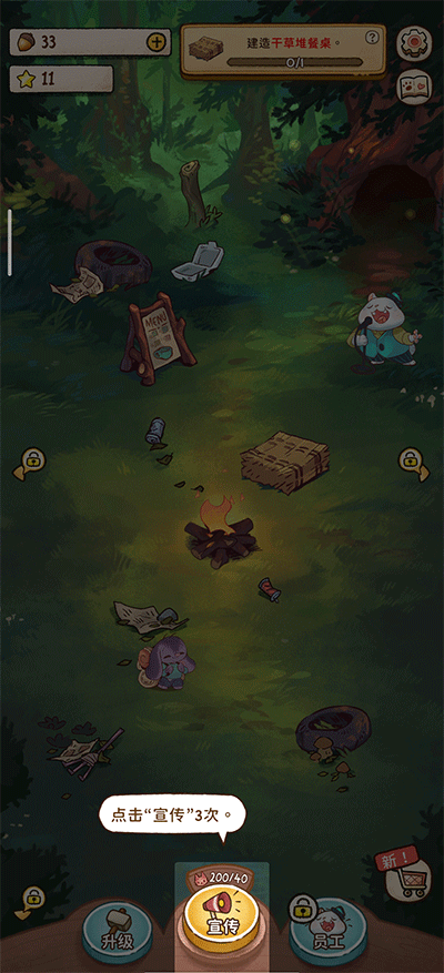 1、研发餐食并在店内销售,升级食物并增加其属性。