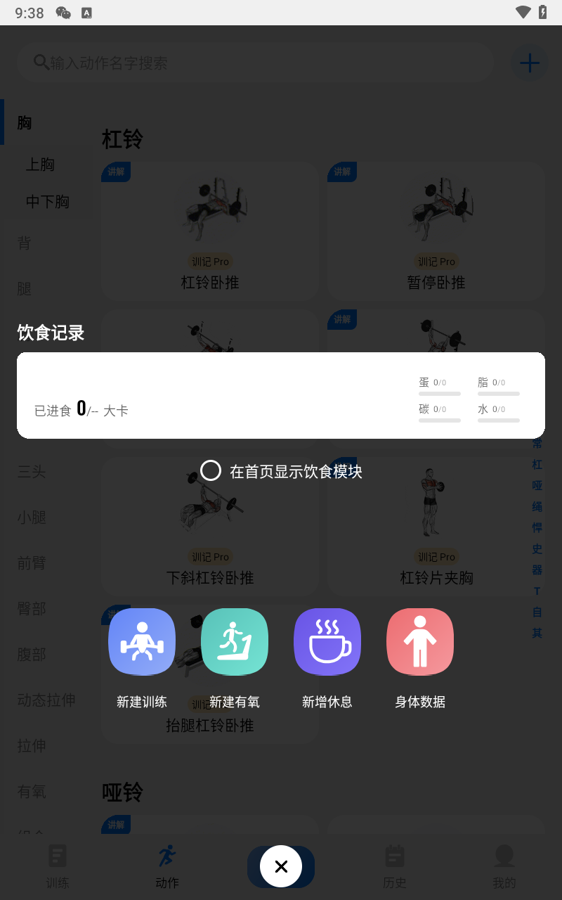 2、点击界面下方训练/饮食
