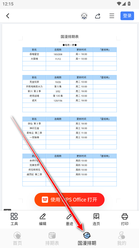 5、点击下方的国漫排期,即可看到最新的动漫排期表单