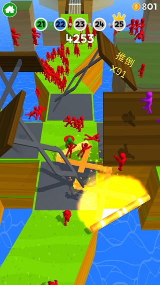 2、触摸旋转屏幕移动确实是3D画面,努力推开所有游戏关卡的尽头,用棍子推开路上所有的敌人。