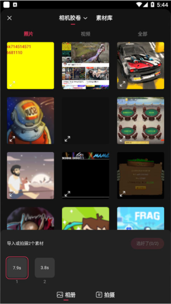 4、选择好自己需要导入的照片或者视频