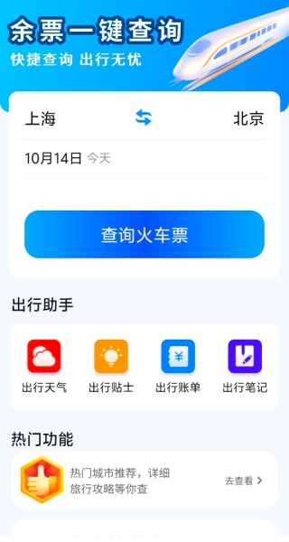 火车票余票速查这是一款能够为我们旅游出行时随时查看指定日期高铁火车票信息的软件,无论是日常通勤的路线优化还是商务差旅的行程管理,我们可以将自己的想法和需求输入到系统当中,通过智能分析生成个性化出行方案,让每次旅程都能称心如意。
