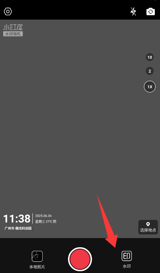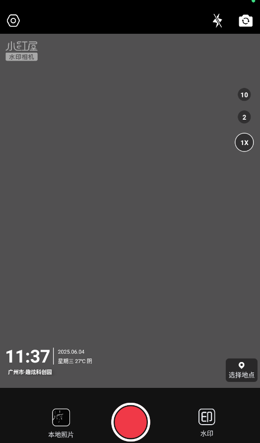 1、启动小红屋水印相机APP后,可直接使用基础拍摄功能进行拍照或选取相册图片。