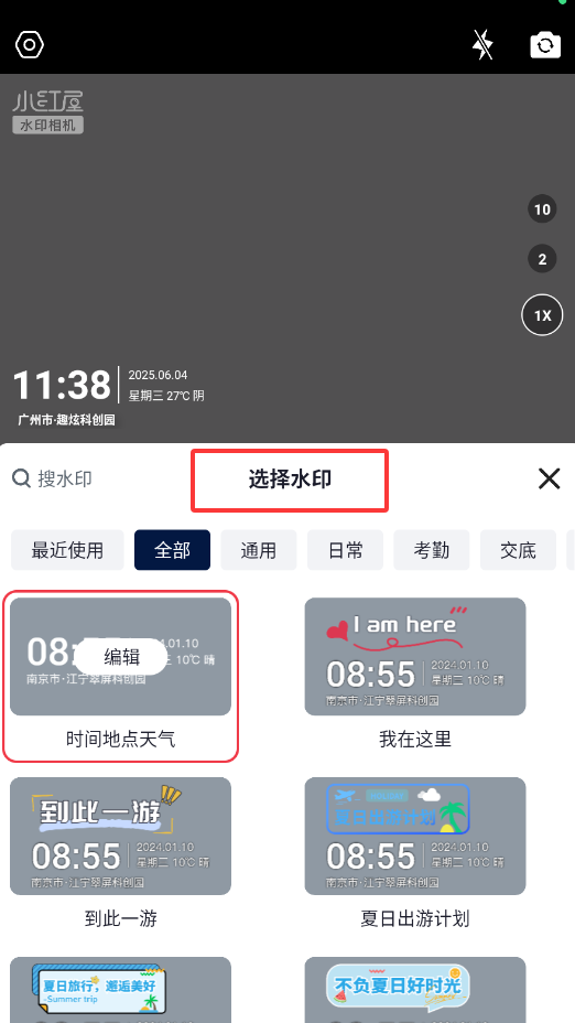 3、水印库提供多种风格模板,包括时间、地点、天气等个性化标签供用户选择添加。