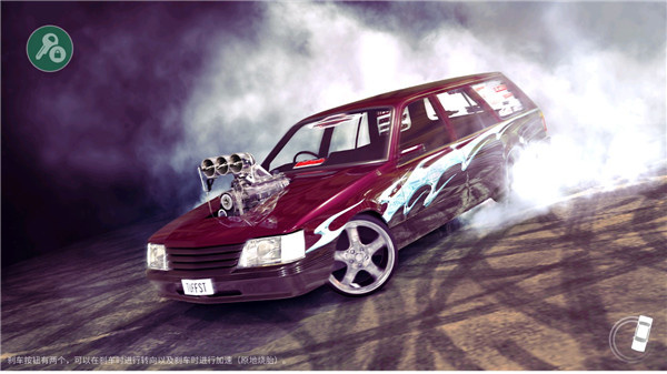 3、左边为方向盘,右边就是刹车和飘逸,按照提示就能够做出十分炫酷的飘逸了;