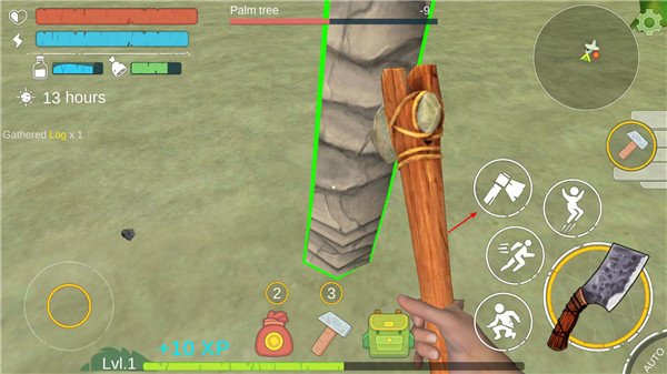 1、下载并安装本站提供的侏罗纪岛屿2最新版打开进入,首先捡一些浅的石头,树枝和植物