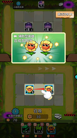 4、当你遇到两个相同的植物,可以拖动他们自由的进行合成。
