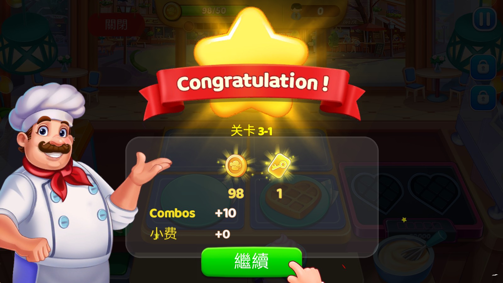 6、招待完所有的客人就能顺利过关,并结算奖励了。