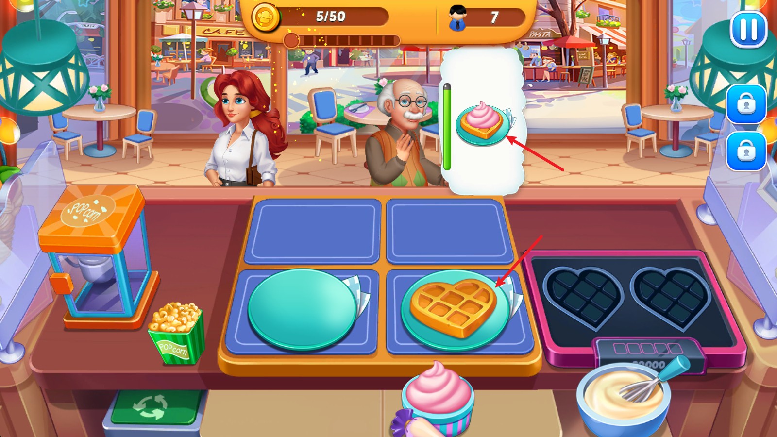 2、待熟透之后就可以放入盘子当中,点击即可将其交给对应的客人。