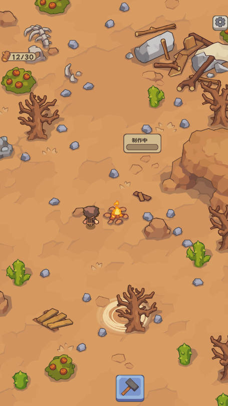 1、游戏初期,最重要的任务就是采集木材、石块和食物等基础资源。利用这些资源制作工具,开始你的生存之旅。可以砍树获得木材,挖矿获取石块,还能通过狩猎或者采集食物来保证食物供应。