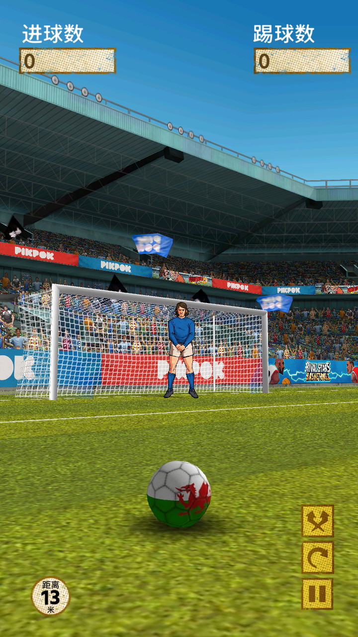 游戏的操作非常简单,玩家只需用手指滑动屏幕来踢球,注意对方防守球员以及守门员的动作