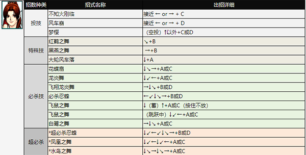 拳皇98AE出招表