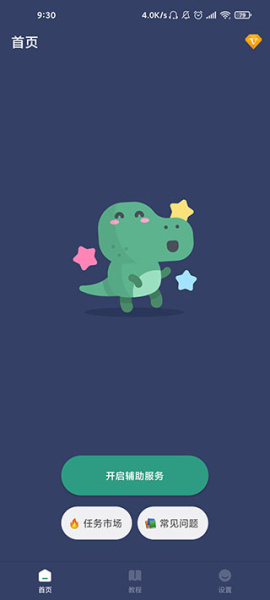 2、接着在首页能够看到开启辅助、应用市场等功能;