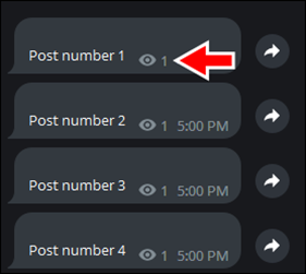 在消息的右上角,查找消息时间戳旁边的“眼睛”图标。这可以让您知道您的订阅者看到了您的消息。 “眼睛”图标旁边的数字表示阅读您消息的h用户数量。