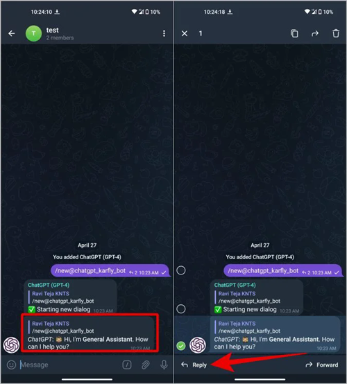要回复,请长按 ChatGPT 消息并选择底部栏中的回复选项。