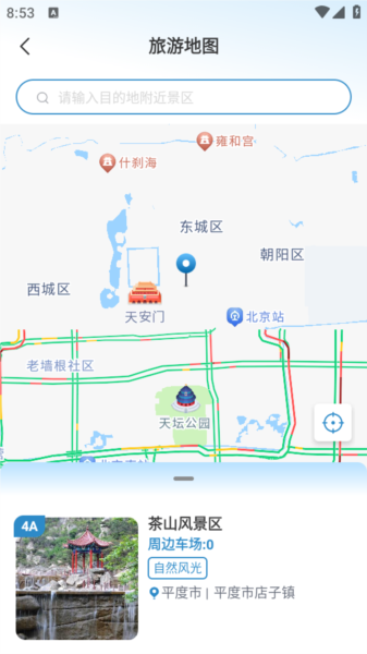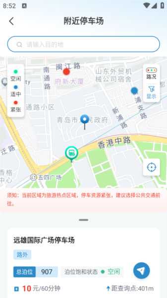1、搜索停车场:可以输入目的地的名称,然后平台就会为你提供目的地周边的停车场