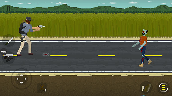 4、点击屏幕其中左下方的两个标志,即可切换近战武器和射击武器,而屏幕中任意处即可开始攻击;