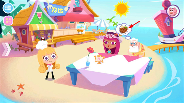 1、玩家打开美食兄妹海岛餐厅游戏,选择角色后邀请客人到位置上,点击客人的需求
