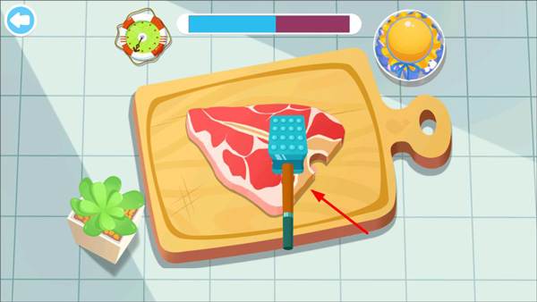 3、接着:点击开始制作,玩家先捶打处理牛排