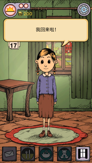 4、在游戏中搜集食物,工作赚钱,同时帮孩子做饭、缝补衣物,陪孩子一起玩。