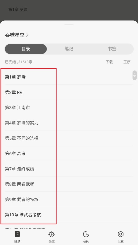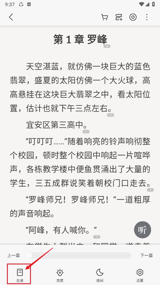 3、然后进入小说阅读界面点击中间区域呼出菜单,再点击"目录"。