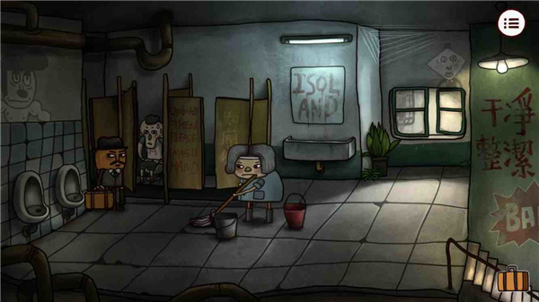 5、去混混二人组对面的厕所,看到做保洁的婆婆。然后调皮的我们开始玩弄厕所的门,看到惊慌失措的马桶用户,反复玩弄厕所门,直至拿到成就。