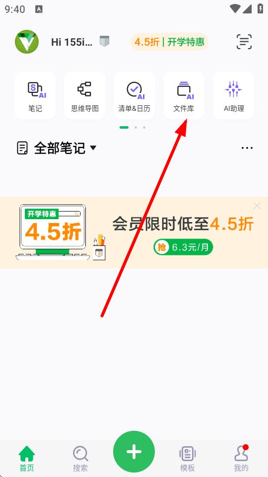 2、在首页界面中点击文件库选项,进入文件库页面。
