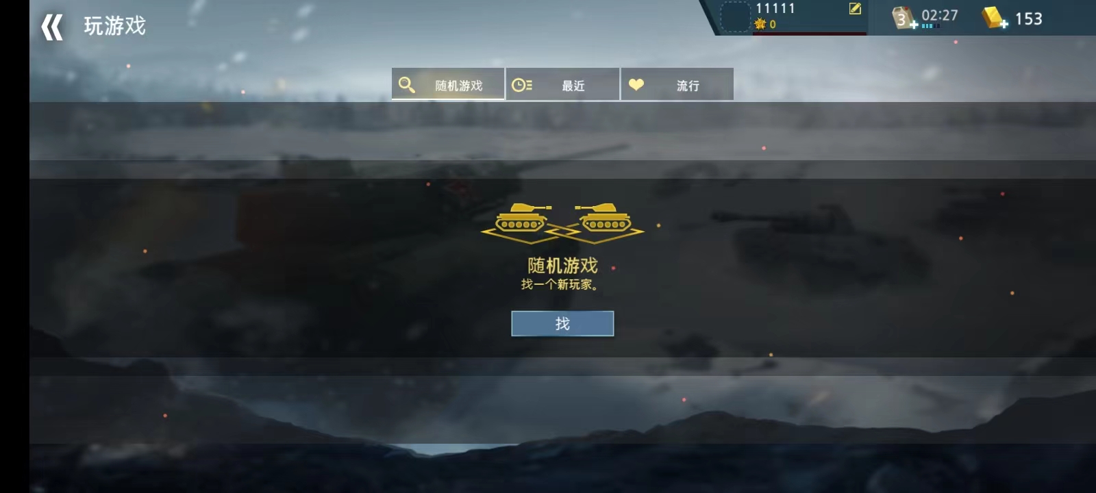 3、这里选择的是【玩游戏】;点击【找】,随后游戏会为玩家随机找一个新玩家;