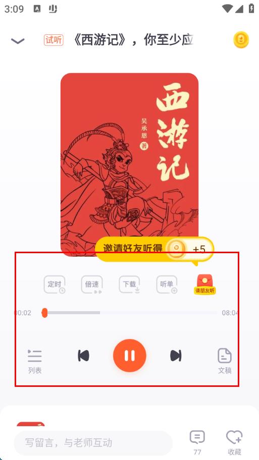4、进入试听播放界面,就可以免费收听部分内容了,能使用定时、倍速、下载等功能。