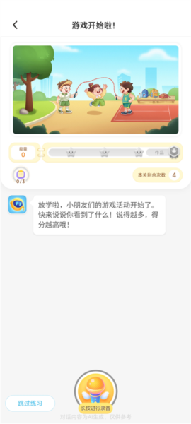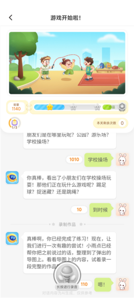 2、 语音互动交流,录制语音与智能助手对话,提升表达能力。